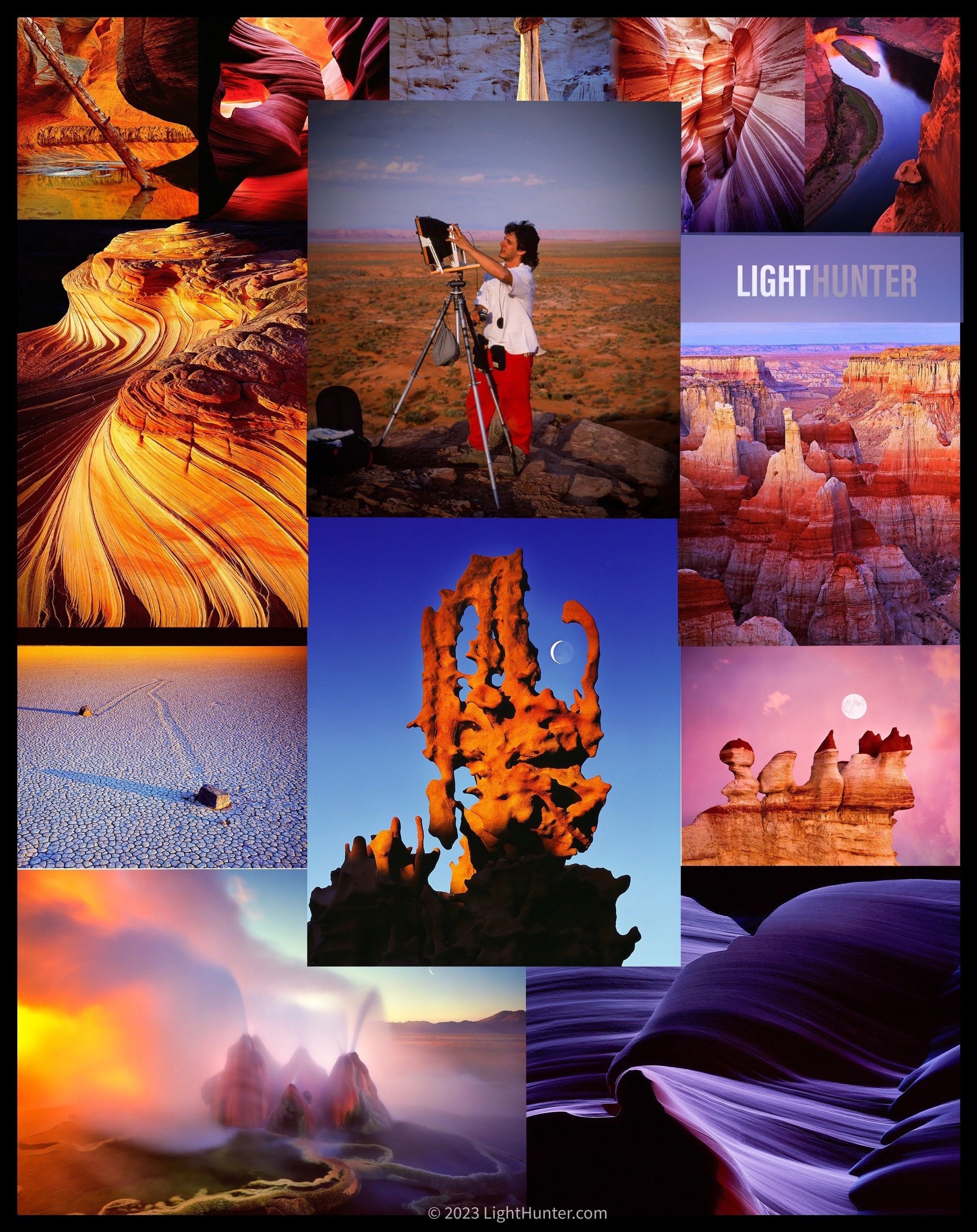 from one of the first LEGENDARY EXPLORERS, recognized as A WORLD'S TOP LANDSCAPE PHOTOGRAPHER. Light Hunter captures the beauty and spirit of SECRET CANYONS of the Southwest on the undeniable high quality of LARGE FORMAT FILM, which makes these images a rare addition to your family Heirloom of PHOTOGRAPHIC ART!